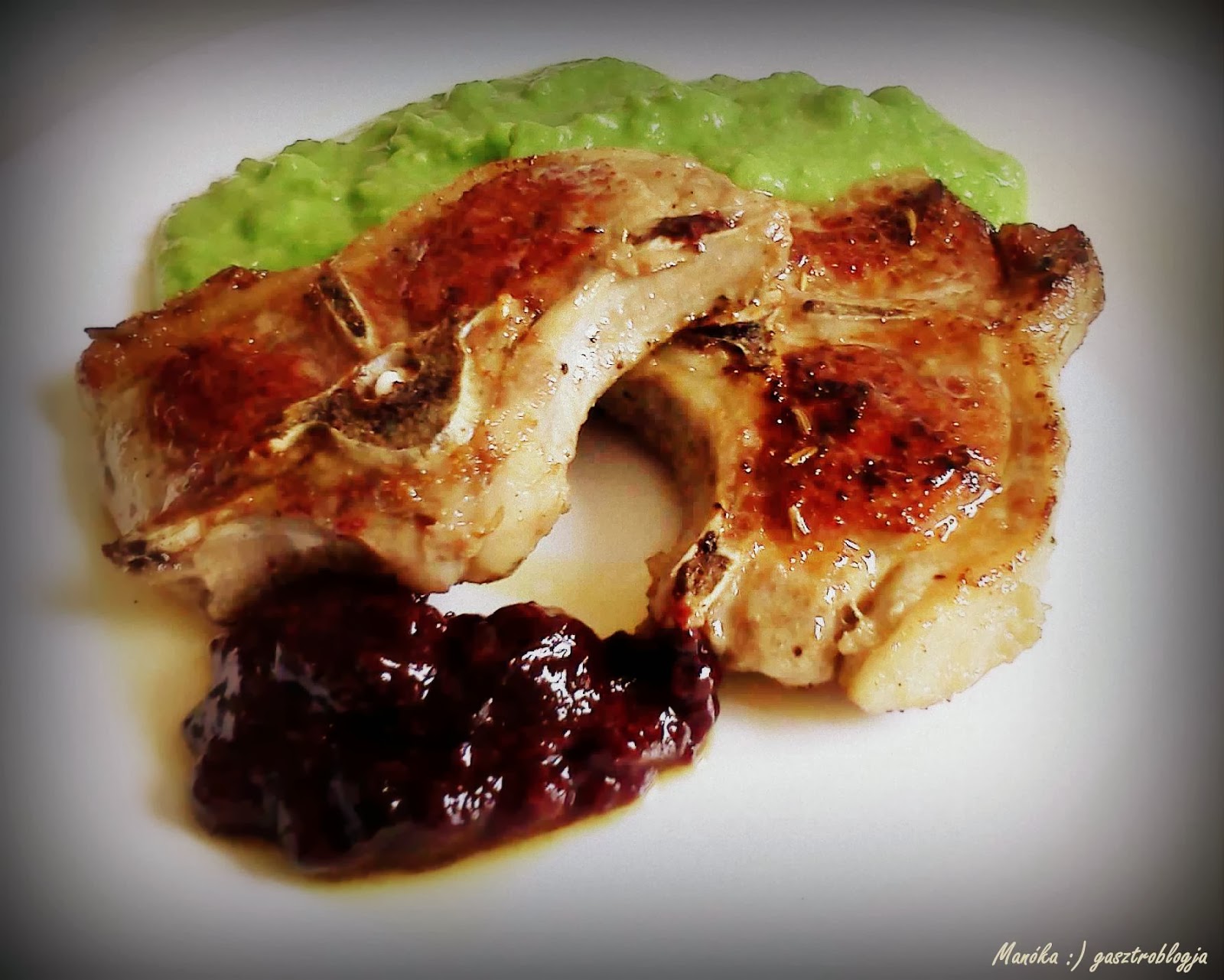 A bárányt sütés előtt szobahőmérsékleten pihentettem fél órát, majd bepácoltam kb 2 evőkanál olívaolaj + rozmaring + szárított fokhagyma + kevés bors keverékébe. A grillserpenyő alá jó nagy lángon begyújtottam és forróra hevítettem. A forró serpenyőben oldalukon 3-3 perc alatt a bordákat megsütöttem. Nagyon finom, ropogós kérget kapott így a hús és nagyon omlóSZ lett 🙂 Miután megsült, kiszedtem, és kb. 5 perc pihentetés után tálaltam a zöldborsóval és egy evőkanál felmelegített házi szilvalekvárral. A bárányt csak közvetlenül a fogyasztás előtt sóztuk.